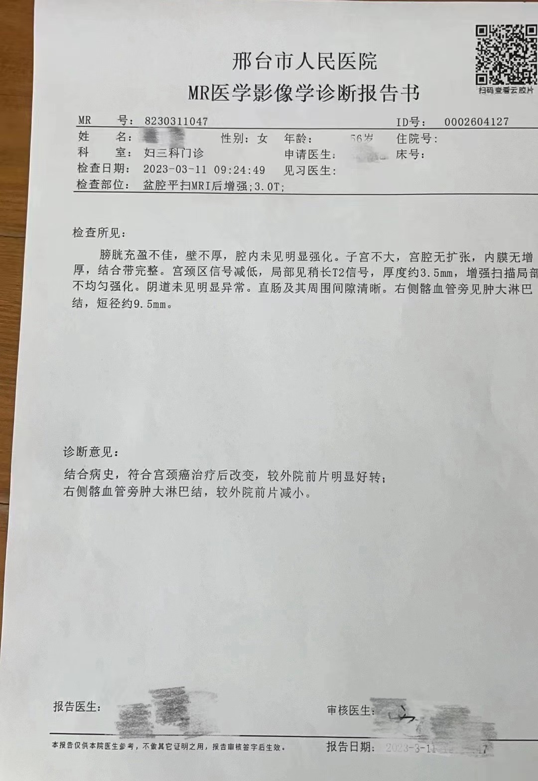 “化疗引起的胸闷、恶心干呕、腹痛等各种不适症状使我整夜睡不着觉,我不想再经历化疗了,中医中药一定也可以治愈我的宫颈癌!”带着这份信念,焦某从河北邯郸来到了河南焦作张教授这里,经医易和纯中医专病专治八大癌症肿瘤王(治癌王)张中海主任面诊,仅服1个多月的中药,焦某恶心干呕的症状便消失,胸闷情况好转。经大医院检查,其右侧髂血管旁肿大淋巴结,较之前减小,宫颈癌症状明显减轻。一切的好转都来自于56岁的焦某,相信中医,相信中药带来的奇迹!