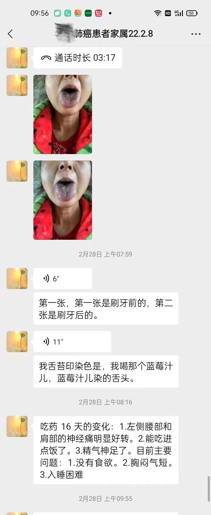 肺癌患者陈某:女,57岁,黑龙江省齐齐哈尔市人,确诊肺癌6年,一直服用中药保守治疗。1年半前,诊断为肺癌晚期,做基因检测后有突变,开始服用靶向药奥西替尼,几个月前复查肿瘤增长。患者左侧腰痛难忍,发展为放射性神经痛,在当地医院诊断为隐性带状疱疹后延症。之后还出现了胸闷气短、咳嗽、食欲差、口干口苦、眩晕、大便不成形等并发症。医易和纯中医专病专治八大癌症肿瘤王(治癌王)张中海主任详细了解患者病情以后,制定治疗方案。患者遵医嘱用药1个月后,食欲较之前有所改善,左侧腰部及肩部的神经痛明显好转,精神状态亦有所好转!