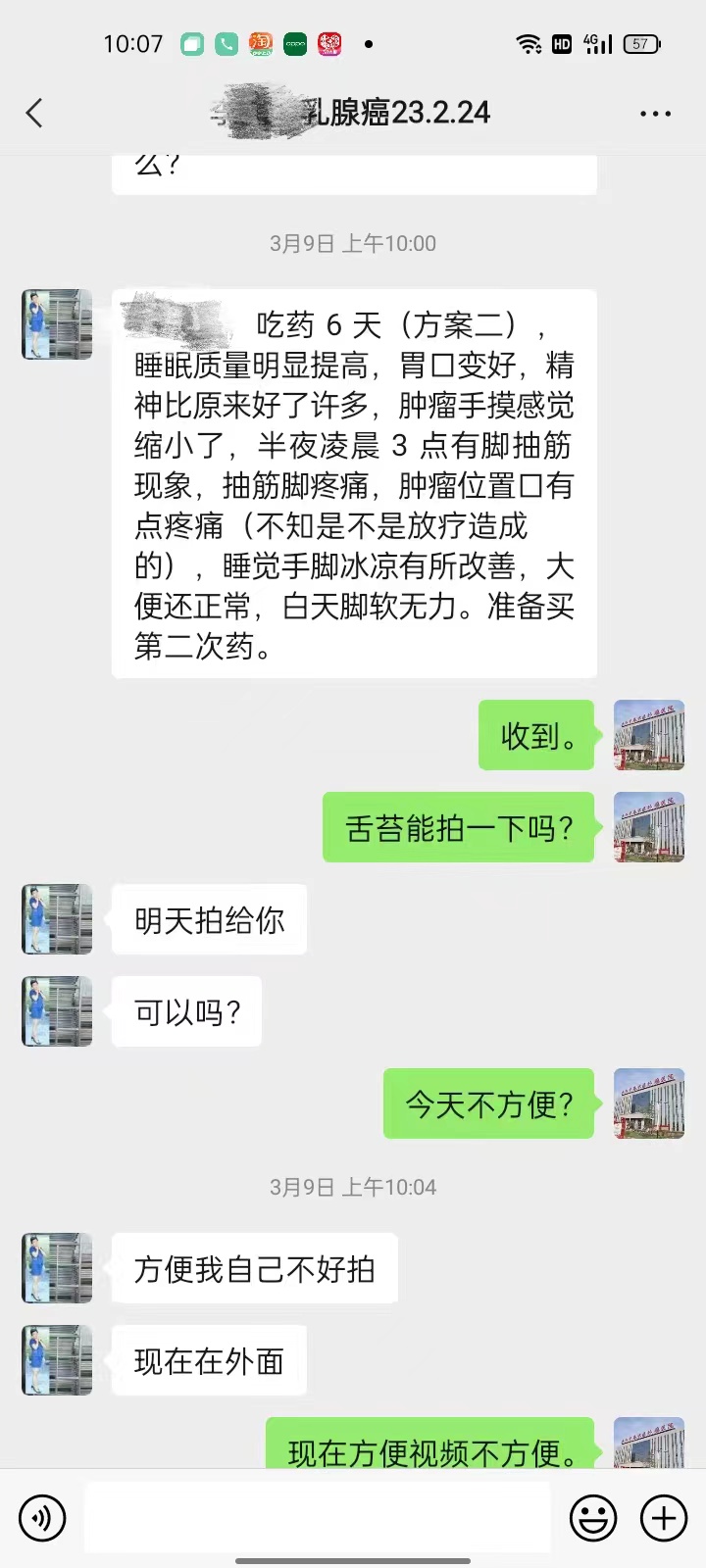 乳腺癌患者李某:女,52岁,广西省柳州市人,5年前因左乳肿块在当地确诊为左侧乳腺癌,遂做手术切除,手术后又做了多次化疗,3年前复发再次手术切除,近日又出现复发。如今患者锁骨肿块肿、胀,浑身乏力,睡眠质量差,白细胞偏低。了解到医易和纯中医专病专治八大癌症肿瘤王(治癌王)张中海主任擅长采用花钱少、不遭罪的中药治疗肿瘤后,前来医易和纯中医专病专治八大癌症肿瘤王(治癌王)张中海主任就诊。吃了6副中药后,患者睡眠质量有了明显改善,锁骨肿块较前缩小,精神状态好了很多。患者准备在医易和纯中医专病专治八大癌症肿瘤王(治癌王)张中海主任再次购买药物,进行持续治疗。