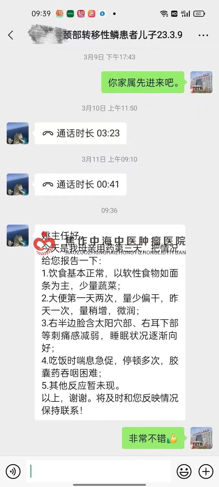 半年前,72岁的王某无明显诱因出现声音嘶哑,气短,在当地检查出颈部有肿块,因为肿块的压迫,患者呼吸困难,遂做手术在气管内安装金属气眼,而后又查出患颈部转移性鳞癌。此时,王某出现了吞咽不利,面部疼痛、睡眠质量欠佳,呼吸急促等症状。今慕名前来医易和纯中医专病专治八大癌症肿瘤王(治癌王)张中海主任就诊,服用中药治疗,仅3天时间,患者饮食基本正常,面部疼痛感减弱,睡眠质量也逐渐好转。